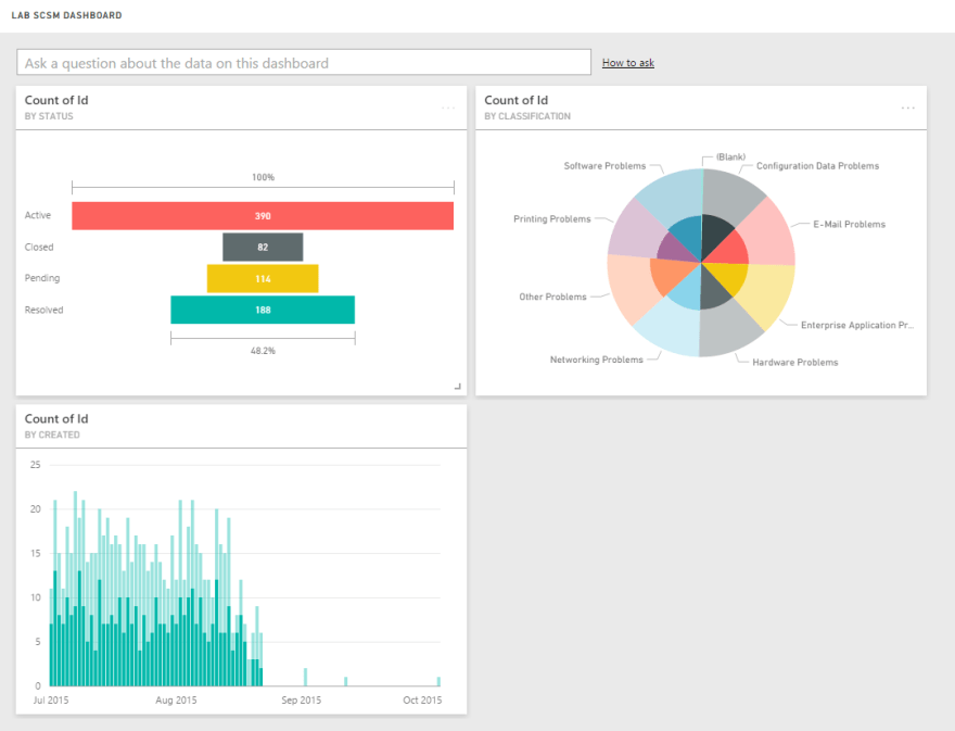 This blog is the first in a series that I’ll be writing, starting today and continuing through the next few weeks, that will focus on how IT shops can easily automate the process of dashboard creation within Power BI and then present this information to their users in a very mobile friendly fashion through the Power BI app. Going a step further, we will use Microsoft’s Azure Automation in the cloud to run on-premise runbooks to collect the data from Service Manager and upload the data into Power BI using Powershell and the Power BI API.